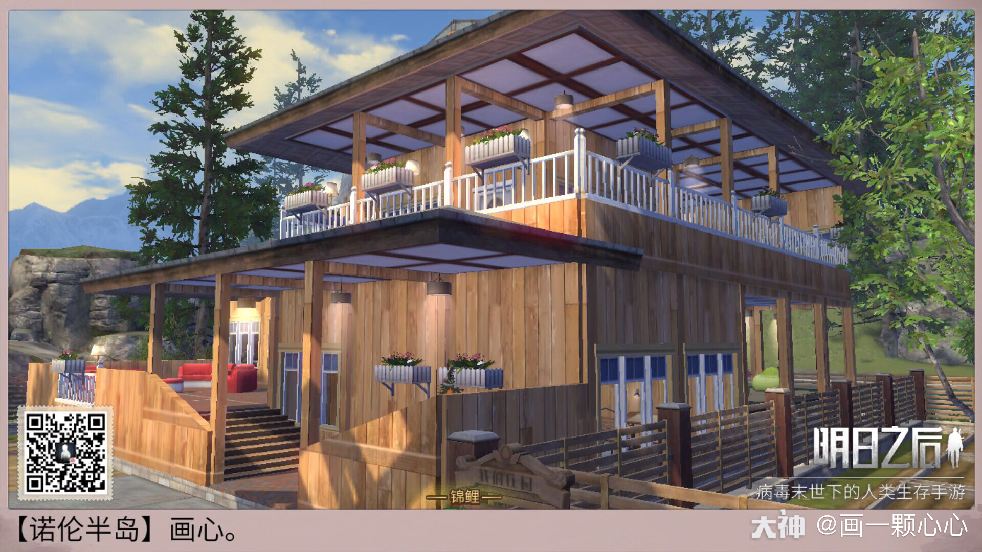 望月 发个预告吧 重点是卧室楼上的小阁楼 外扩式阳台 晚上看星星月亮早晨 来自网易大神明日之后圈子 画一颗心心